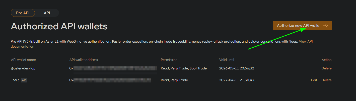 - Now we are ready to generate the API Key. Head on over to AsterDex and: